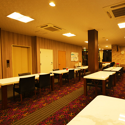 談話コーナー併設の広い食堂兼機能訓練室(大型デジタルTV設置)
